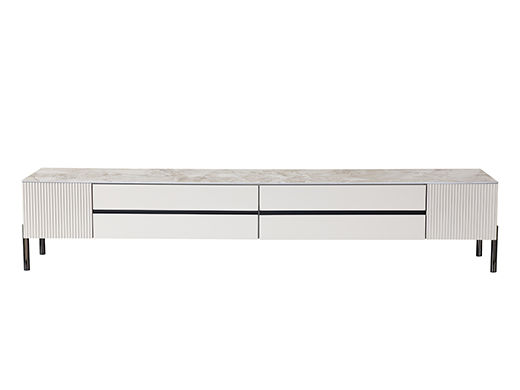 CBD家居 现代简约 雅士白哑光岩板+环保烤漆磨砂柜体+碳素钢黑砂五金脚 图片色 2米电视柜
