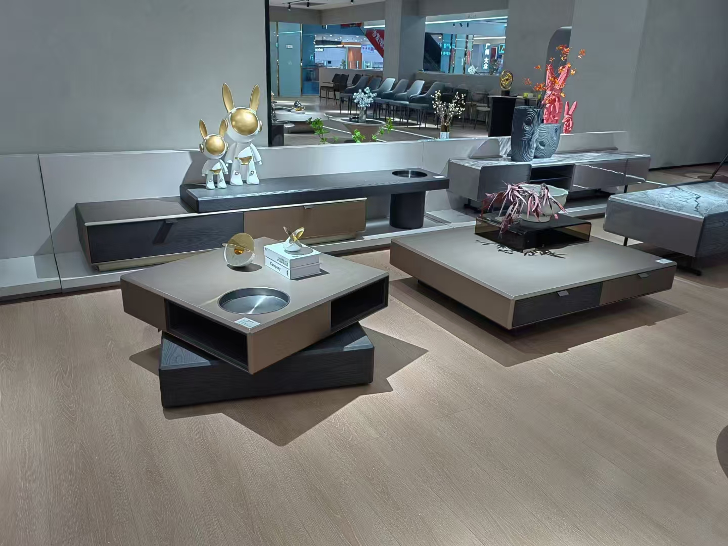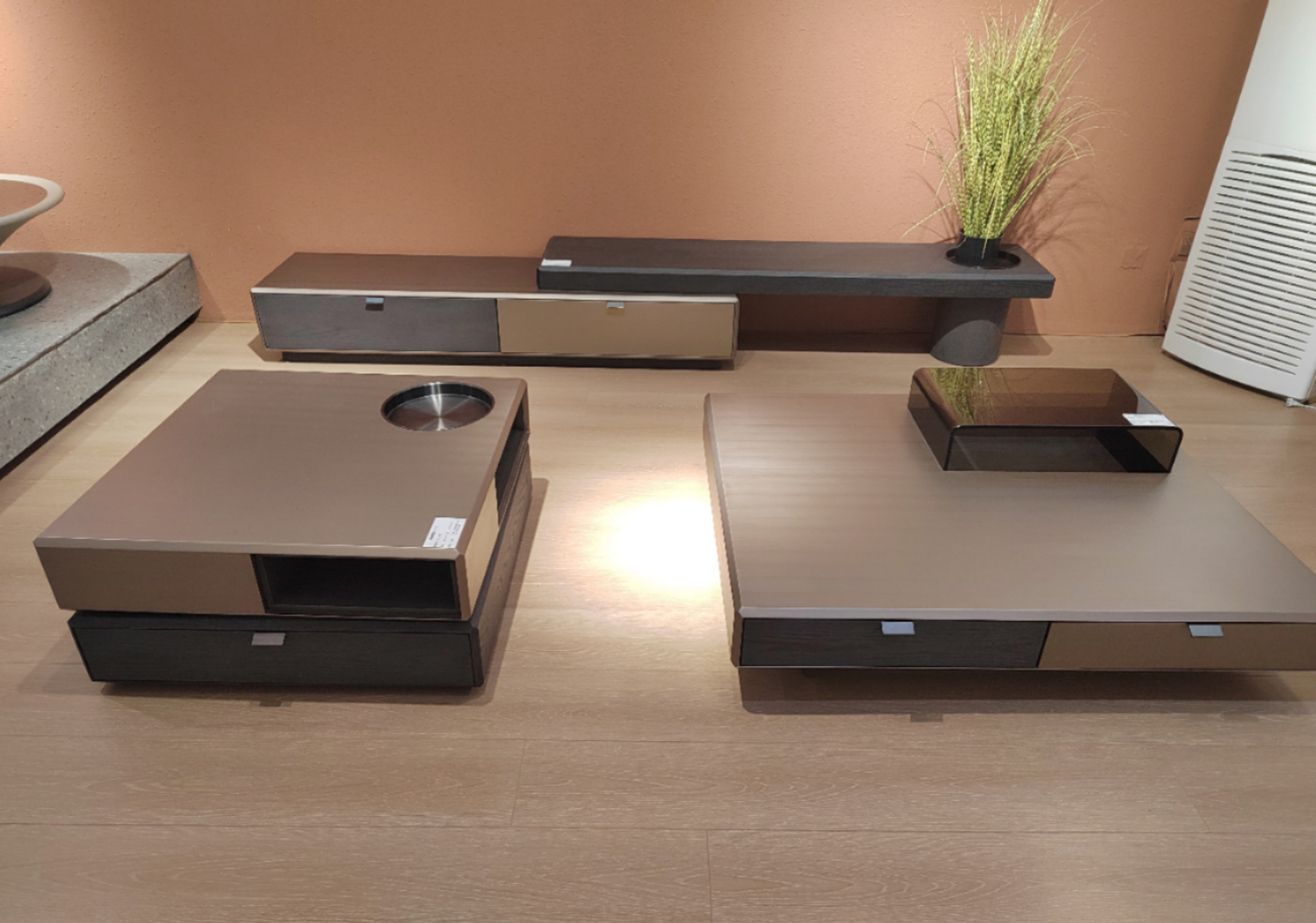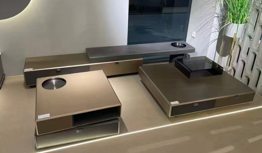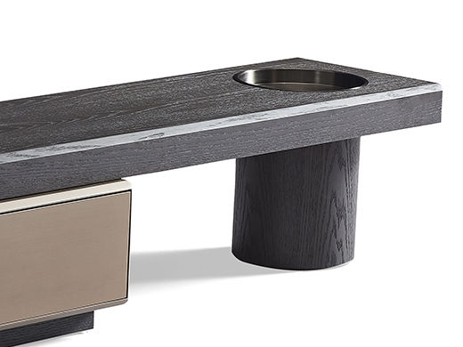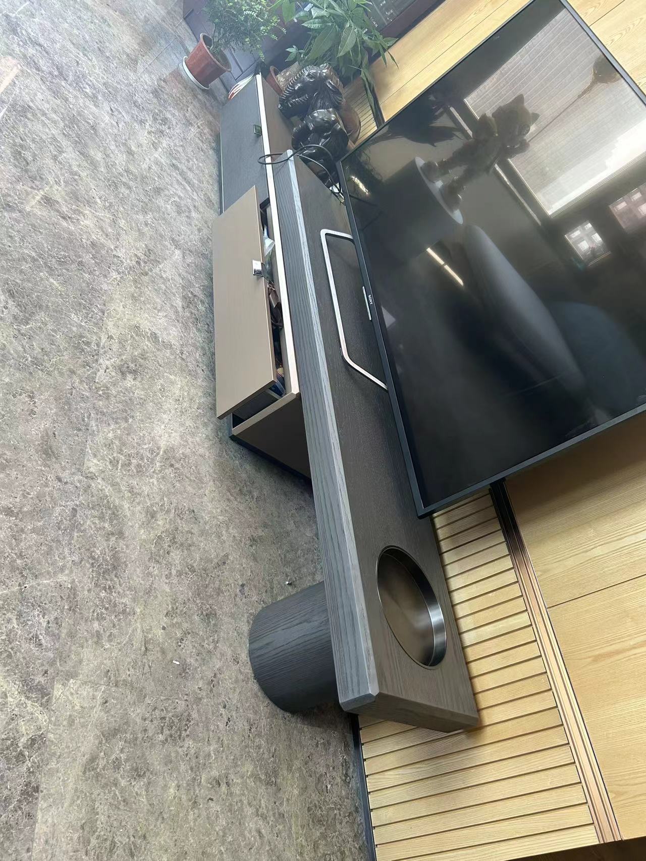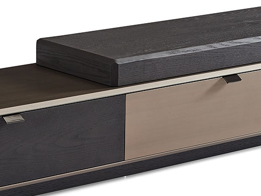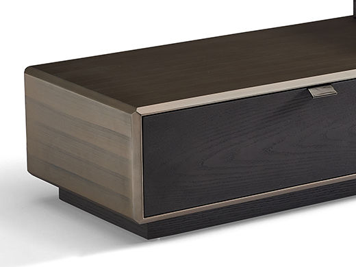 梵纳意简 极简 黑榆木+金属拉丝漆+不锈钢盘+E1中纤板 图片色 拉伸电视柜