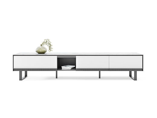 CBD家居 现代简约 雅士白哑光岩板+环保烤漆磨砂柜体+碳素钢黑砂五金脚 图片色 2米电视柜¥2330