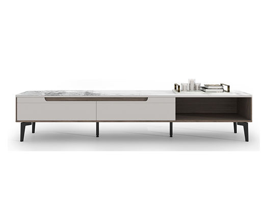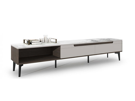 CBD家居 现代简约 鱼肚灰亮光岩板+卡其色柜面+五金脚 图片色 2.03米电视柜【卖完即止】¥4923