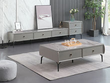 B系优选 现代简约 E1环保中纤板+环保水性漆+烟熏色三胺板抽屉+三节滑珠导轨 6MM岩板 哑光大花白 碳素钢五金脚 浅灰 电视柜(未开电源孔)(不含边柜)¥2330