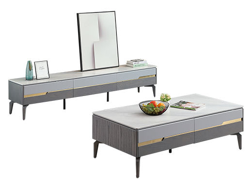 B系优选 现代简约 E1环保中纤板+环保水性漆+烟熏色三胺板抽屉+三节滑珠导轨 6MM岩板 哑光大花白 碳素钢五金脚 浅灰 电视柜(未开电源孔)(不含边柜)¥2330