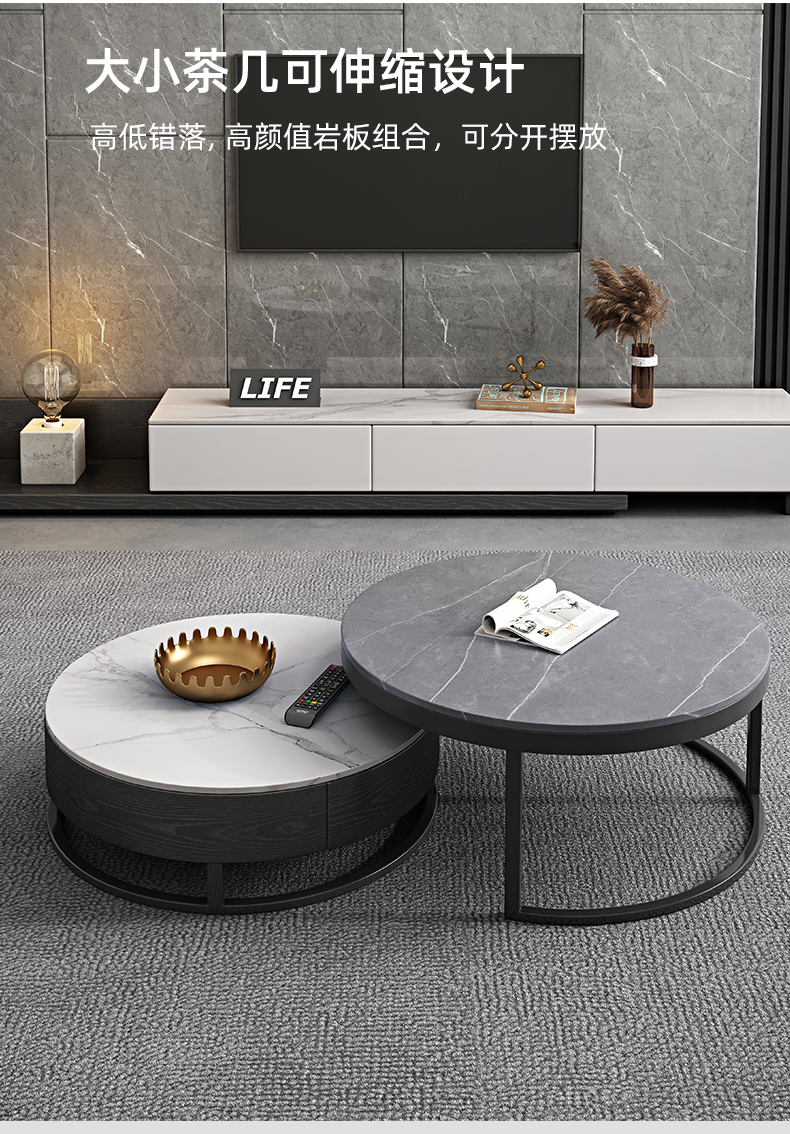 B系优选 现代简约 中纤板(MDF)亮光烤漆+岩板台面+实木松木抽屉 香奈儿 拉伸电视柜(未开电源孔)¥2330
