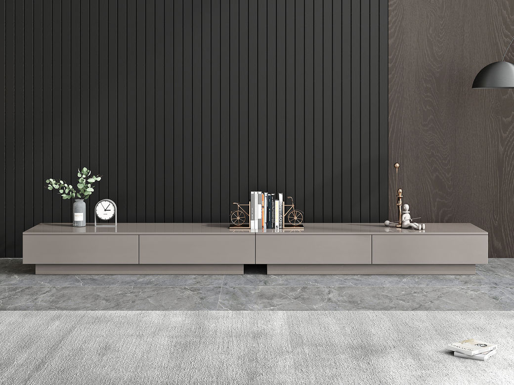 A系优选 现代简约 柜体:卡其-灰 岩板+托底缓冲导轨 PVC环保覆膜工艺 香奈儿 (不含边柜)2米电视柜(未开电源孔)¥1911