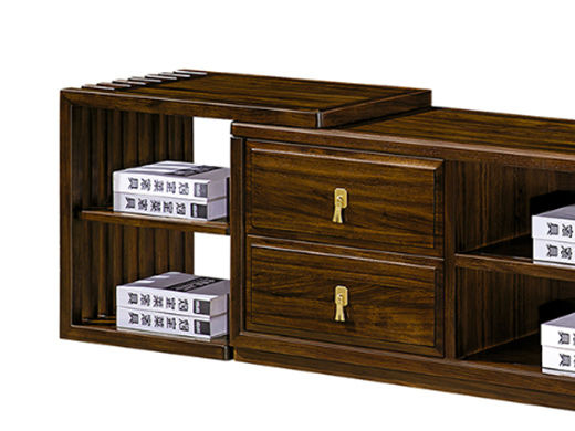 美檀家居 新中式 进口黑檀木+多层实木板+电镀五金+静音缓冲导轨 黑檀色 电视柜