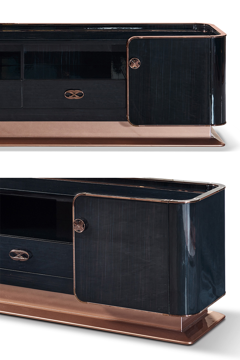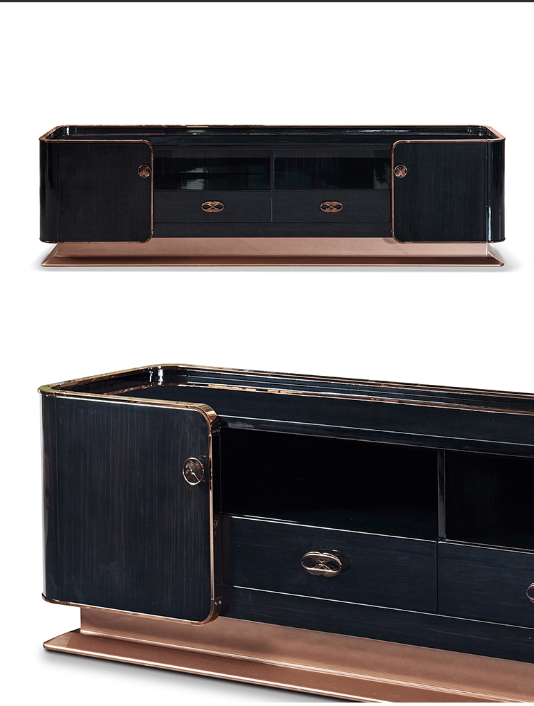 拉斐尔 轻奢 多层实木板+烤漆+电镀不锈钢五金+岩板+静音导轨 电视柜
