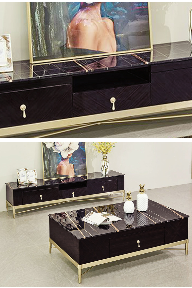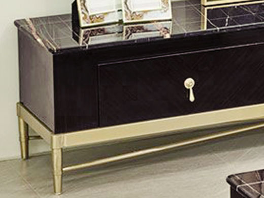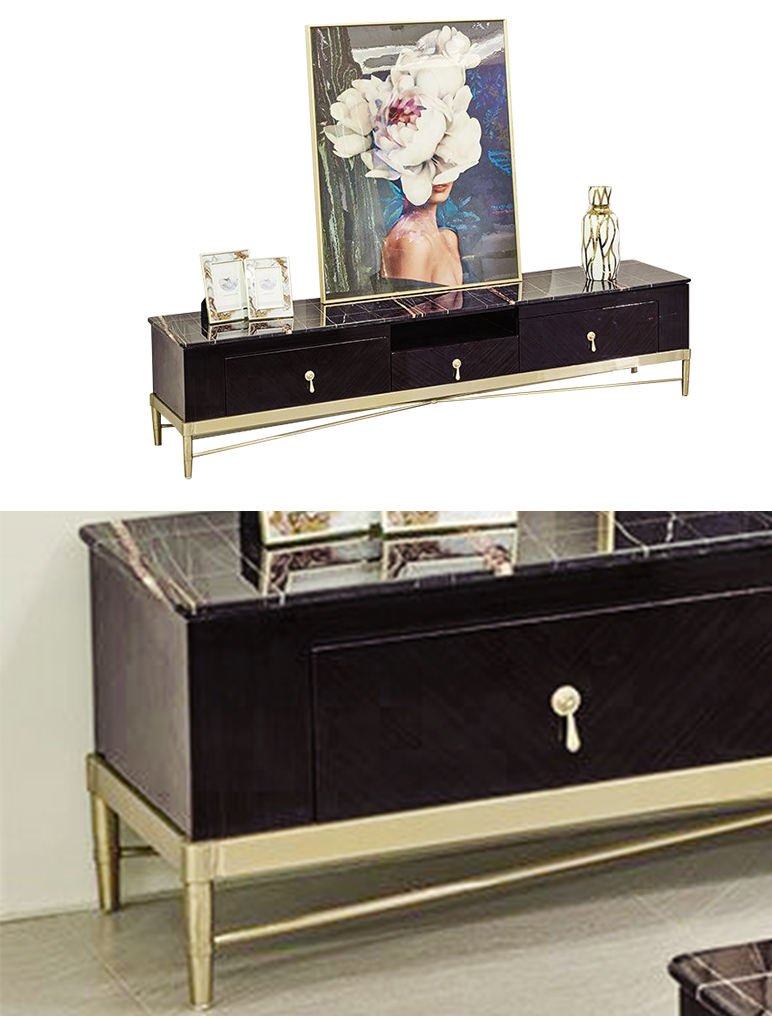 拜洛迪 轻奢 板木结合配拉丝钛金不锈钢,底架扪皮 大理石面 黑色 2米电视柜¥7712