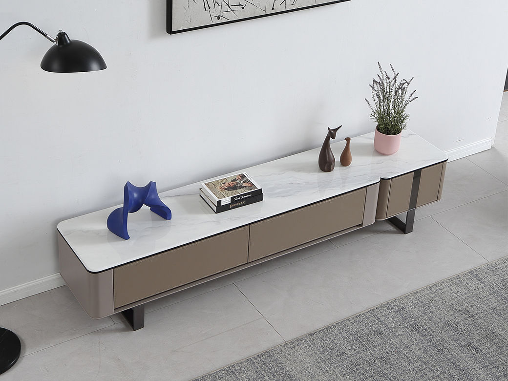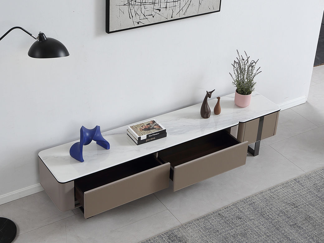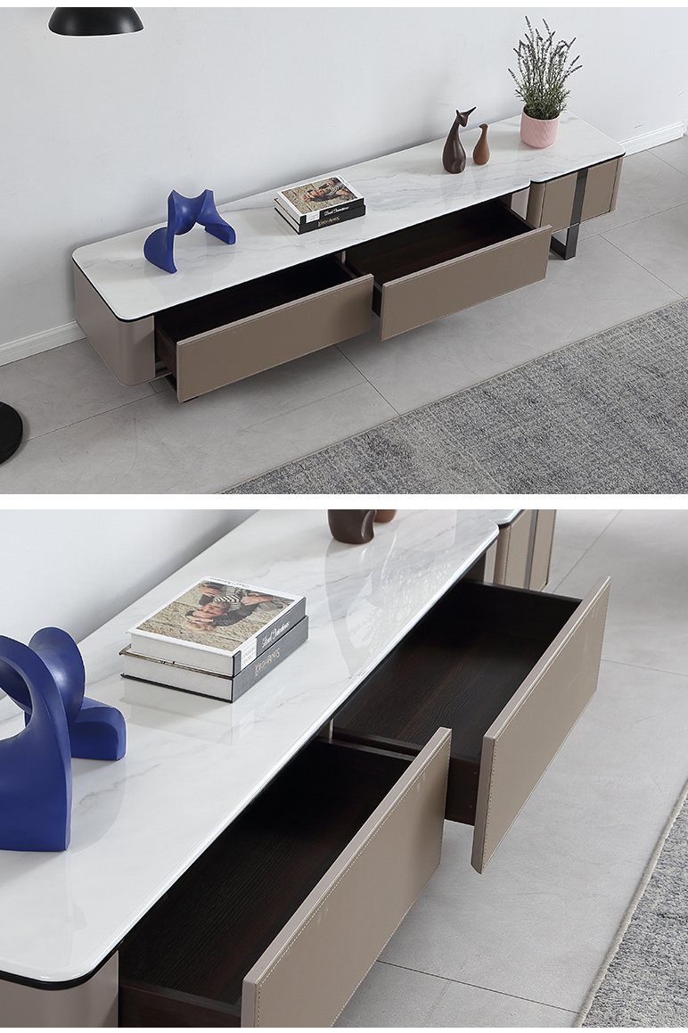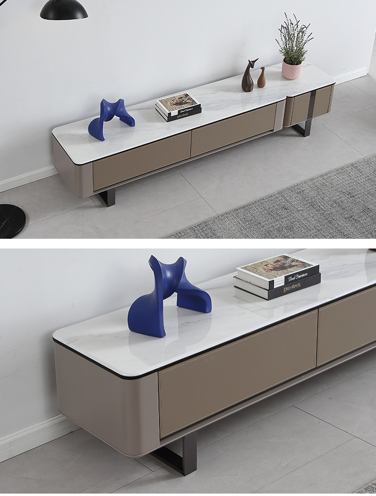 甄品家具 现代简约 烤漆柜体+茶色钢化玻璃+雪山石岩板+碳素钢脚架 2米拉伸电视柜(未开电源孔)¥3975