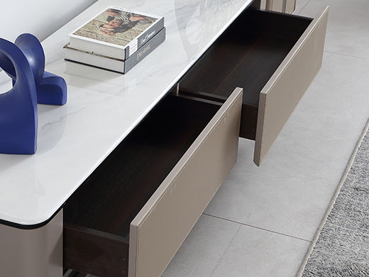 梵歌 现代简约 E1环保中纤板 三节滑珠导轨 细纹橡木皮 高密度三胺板抽屉+三节缓冲导轨 人造大理石 浅卡其 2.2米电视柜¥2656