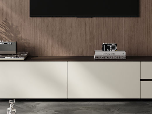 梵歌 现代简约 E1环保中纤板 三节滑珠导轨 细纹橡木皮 高密度三胺板抽屉+三节缓冲导轨 人造大理石 浅卡其 2.2米电视柜