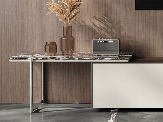 甄品家具 现代简约 烤漆柜体+茶色钢化玻璃+雪山石岩板+碳素钢脚架 2米拉伸电视柜(未开电源孔)¥3975