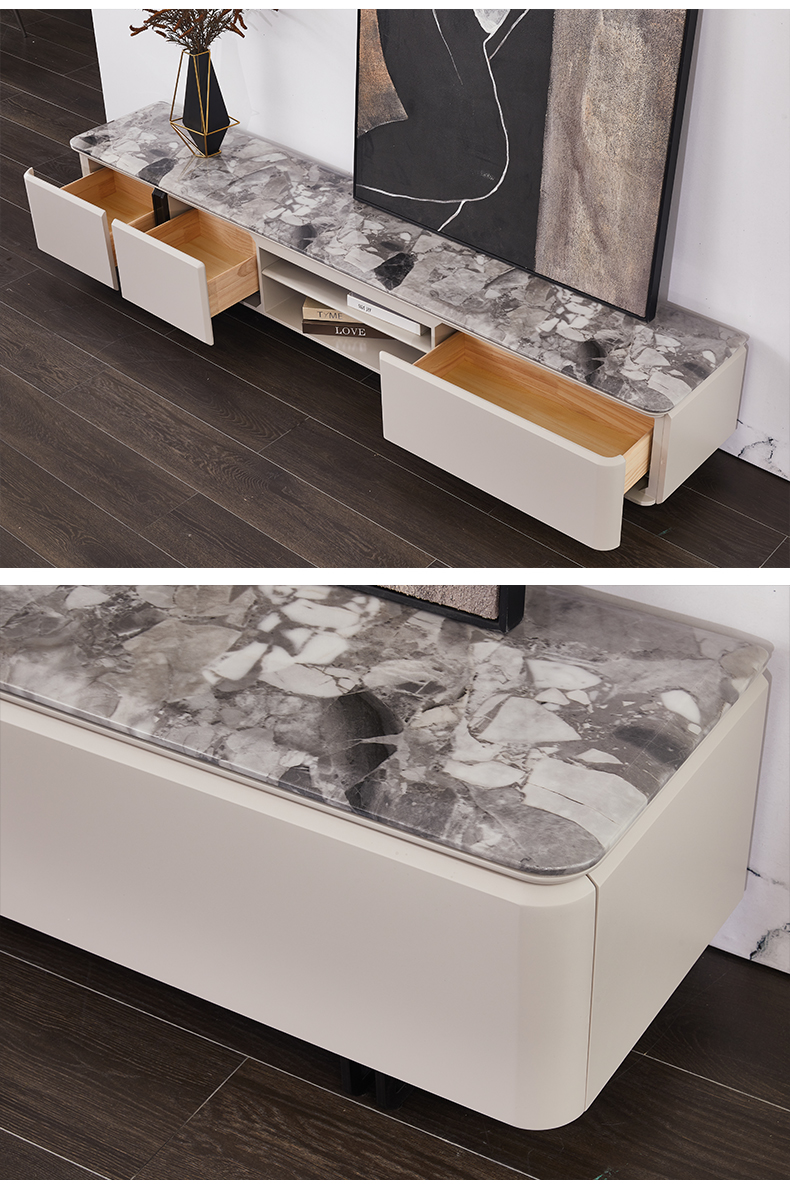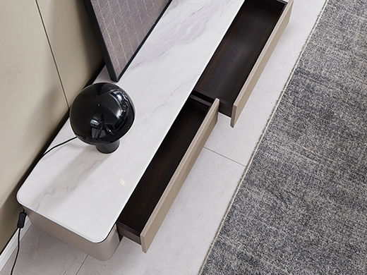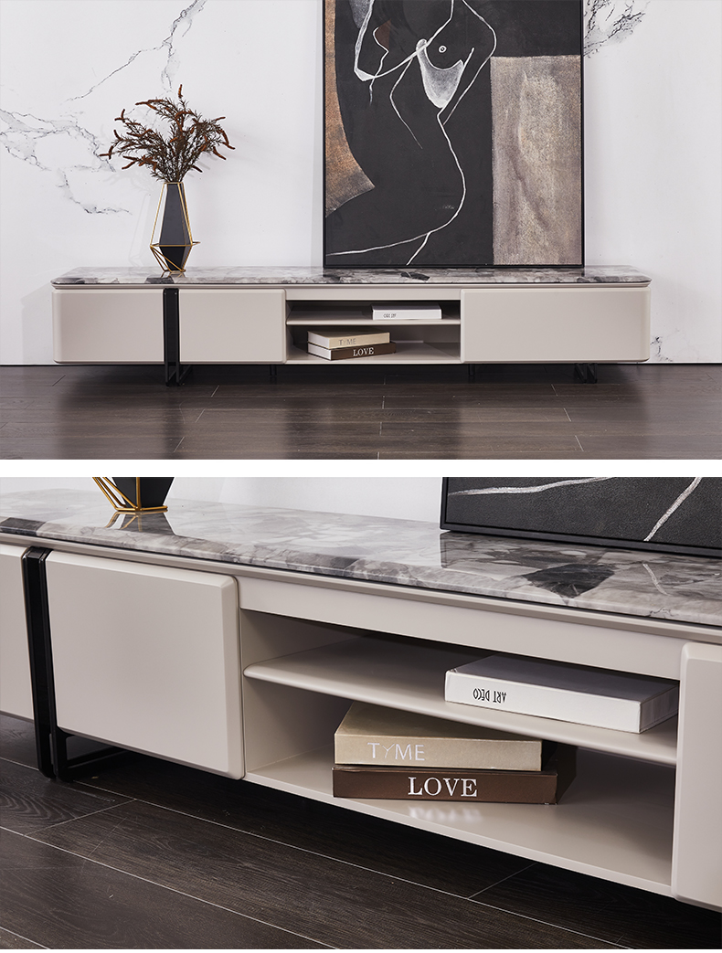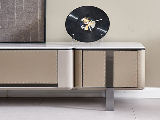 德卡图 现代简约 微晶石面+中纤板+马鞍皮+不锈钢 2米电视柜