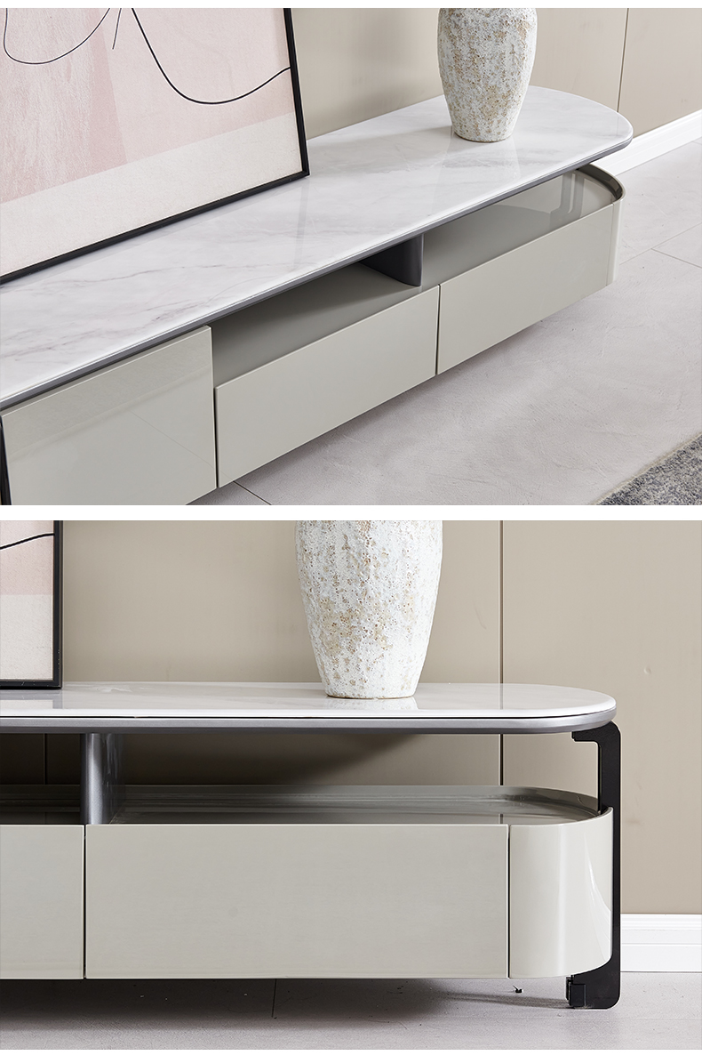 甄品家具 现代简约 烤漆柜体+茶色钢化玻璃+雪山石岩板+碳素钢脚架 2米拉伸电视柜(未开电源孔)¥3975