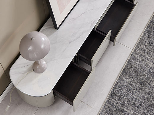 梵歌 现代简约 E1环保中纤板 三节滑珠导轨 细纹橡木皮 高密度三胺板抽屉+三节缓冲导轨 人造大理石 浅卡其 2.2米电视柜¥2656