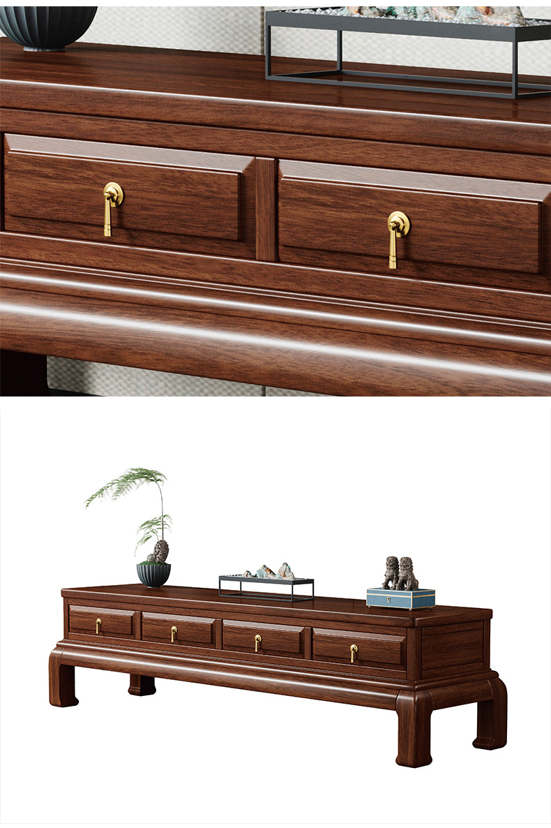 美檀家居 新中式 进口黑檀木+多层实木板+电镀五金+静音缓冲导轨 黑檀色 电视柜¥4208