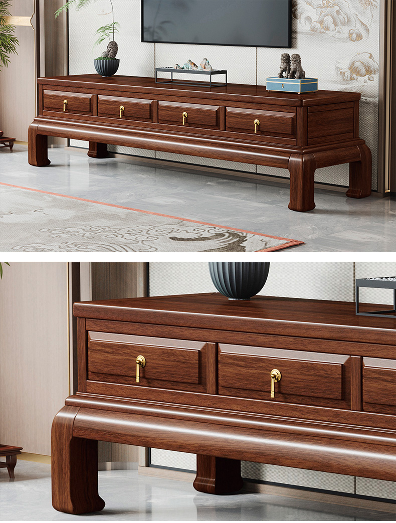 宝瑞·檀风 新中式 印尼金花梨木框架+多层实木板贴皮+电镀五金+实木导轨 紫檀色 1.98米电视柜¥3089