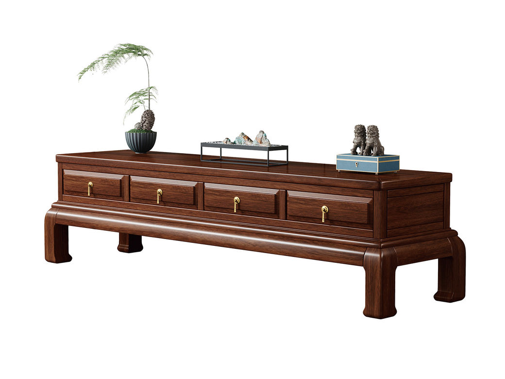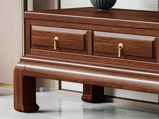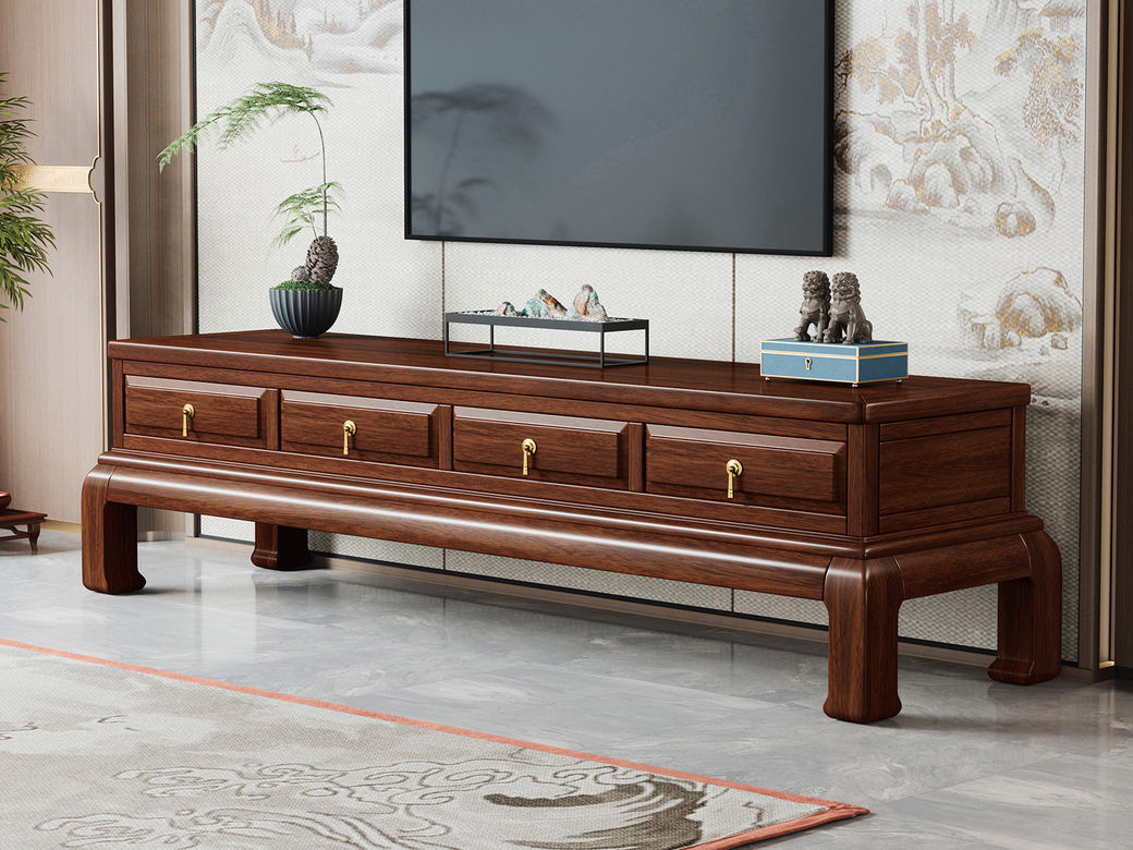 宝瑞·檀风 新中式 印尼金花梨木框架+多层实木板贴皮+电镀五金+实木导轨 紫檀色 电视柜¥5051