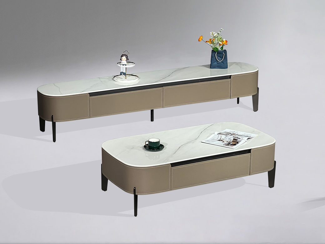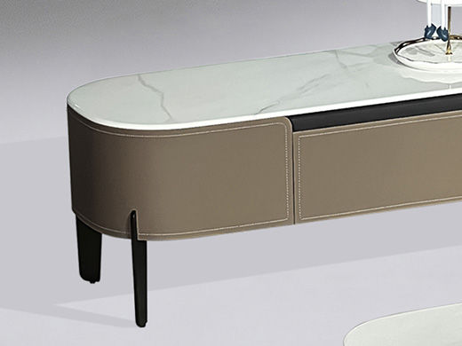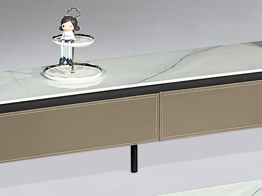 甄品家具 现代简约 天山碧玉微晶石7.5MM+柜体E1级环保板材贴马鞍皮+五金脚 2米电视柜 |
