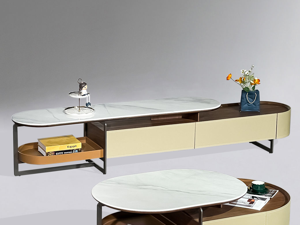 德卡图 现代简约 微晶石面+中纤板+马鞍皮+不锈钢 2米电视柜¥2547