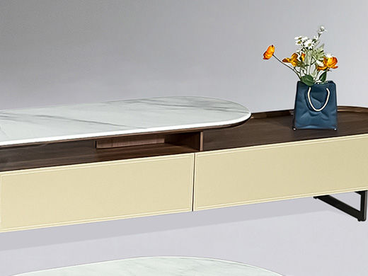 梵歌 现代简约 E1环保中纤板 三节滑珠导轨 细纹橡木皮 高密度三胺板抽屉+三节缓冲导轨 人造大理石 碳素钢五金脚 浅卡其 电视柜¥3292