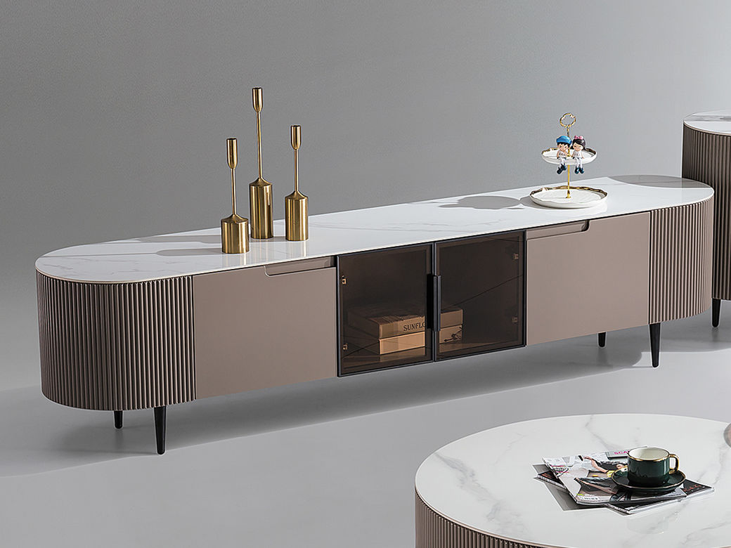 甄品家具 现代简约 西皮柜体+亮光雪山石岩板+镀金脚架 2米电视柜(未开电源孔)¥2141