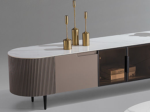 甄品家具 现代简约 烤漆柜体+碳素钢脚架+亮光雪山石岩板 2米电视柜(未开电源孔)¥2248