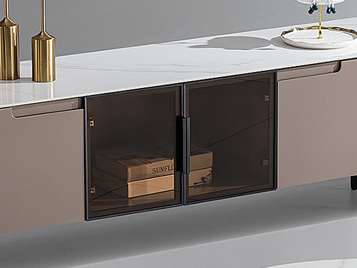 甄品家具 现代简约 烤漆柜体+亮光雪山石岩板+茶色钢化玻璃+碳素钢脚架 2米电视柜(未开电源孔)(不含斗柜)