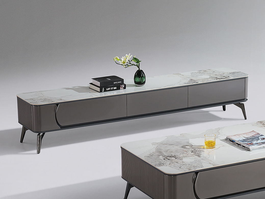 甄品家具 现代简约 烤漆柜体+碳素钢脚架+亮光雪山石岩板 2米电视柜(未开电源孔)¥2032