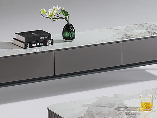 甄品家具 现代简约 烤漆柜体+亮光雪山石岩板+茶色钢化玻璃+碳素钢脚架 2米电视柜(未开电源孔)(不含斗柜)¥2304
