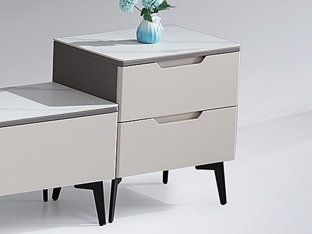 甄品家具 现代简约 烤漆柜体+哑光雪山石岩板+碳素钢脚架 二斗柜