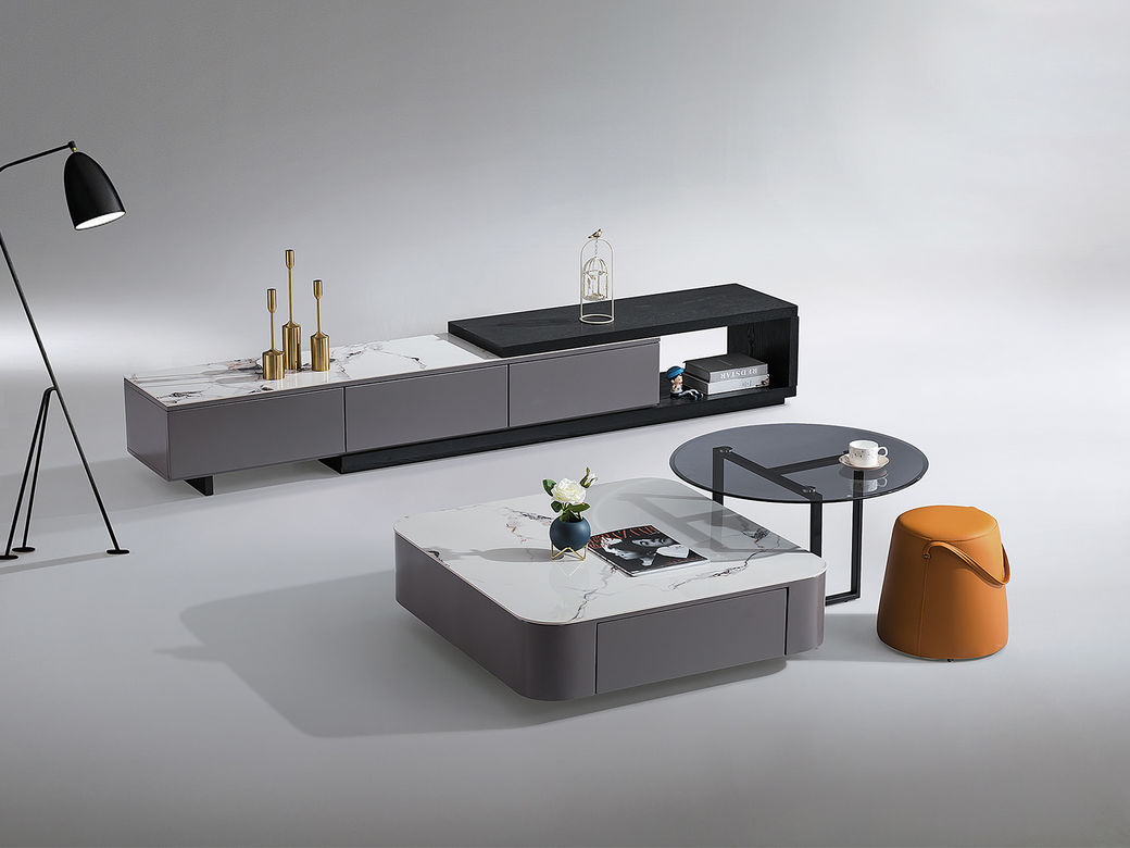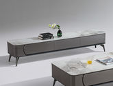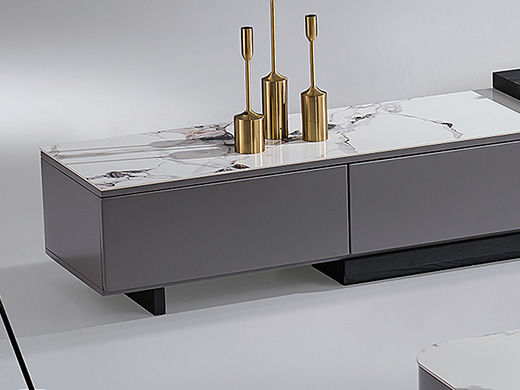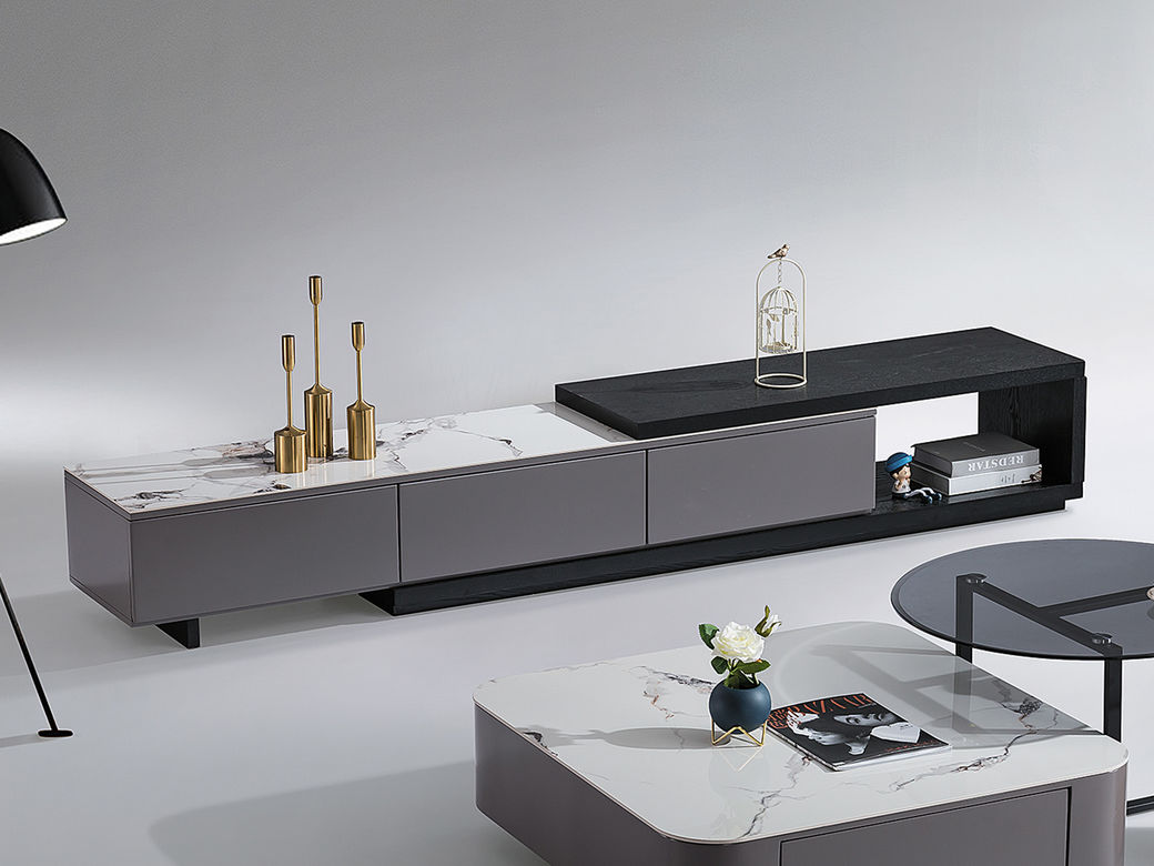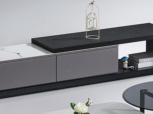 B系优选 现代简约 中纤板(MDF)亮光烤漆+岩板台面+实木松木抽屉 香奈儿 拉伸电视柜(未开电源孔)¥2330