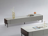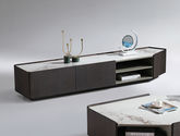梵歌 现代简约 E1环保中纤板 环保水性漆 烟熏木皮 高密度三胺板抽屉+托底缓冲导轨 6MM岩板面(卡利亚灰)碳素钢五金脚 烟熏色 拉伸电视柜¥1911