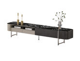 甄品家具 现代简约 烤漆柜体+茶色钢化玻璃+雪山石岩板+碳素钢脚架 2米拉伸电视柜(未开电源孔)