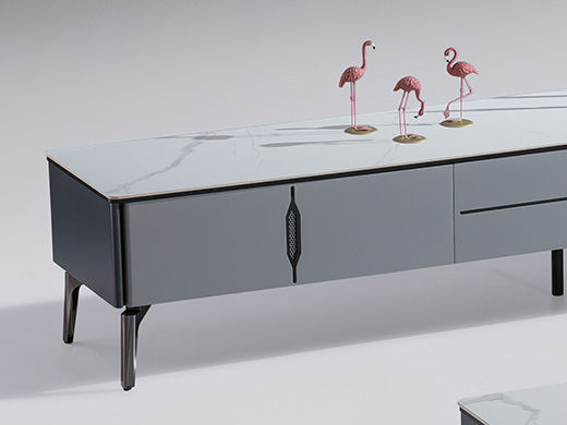 甄品家具 现代简约 烤漆柜体+亮光雪山石岩板面+枪色五金脚架 2米电视柜(未开电源孔)(不含斗柜)¥2440