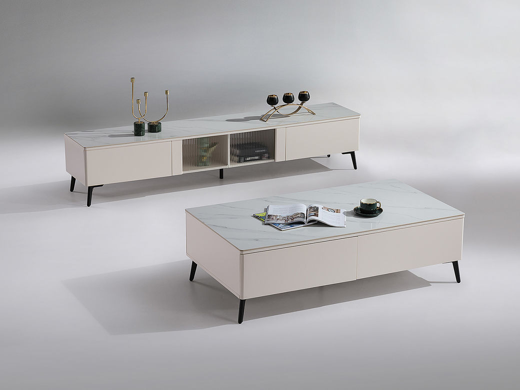 甄品家具 现代简约 烤漆柜体+碳素钢脚架+亮光雪山石岩板 2米电视柜(未开电源孔)