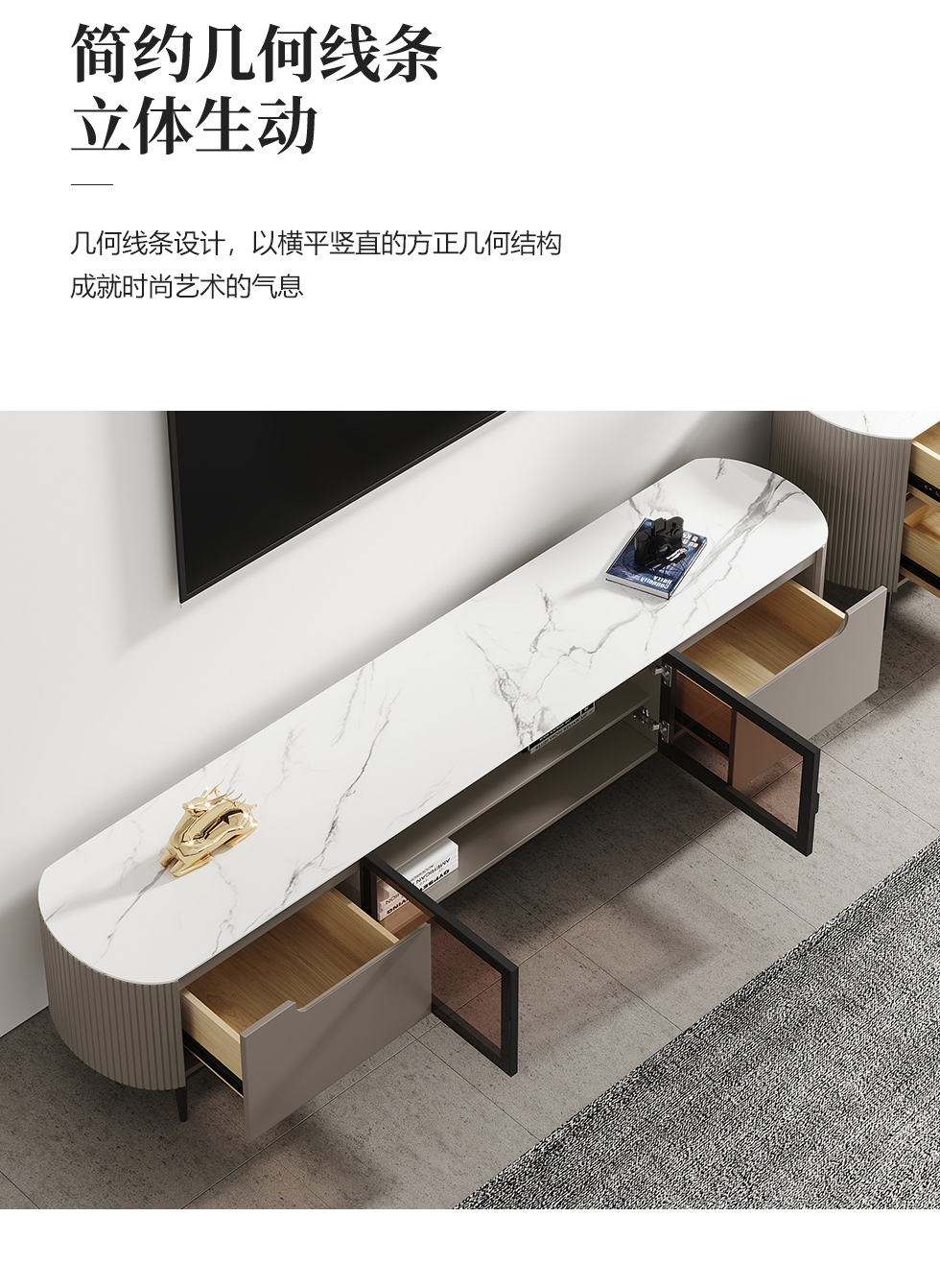 【套餐专享价】每屋优享系列 极简 雪山白亮光岩板+高密度环保板+五金脚 2米电视柜(未开电源孔)¥1631