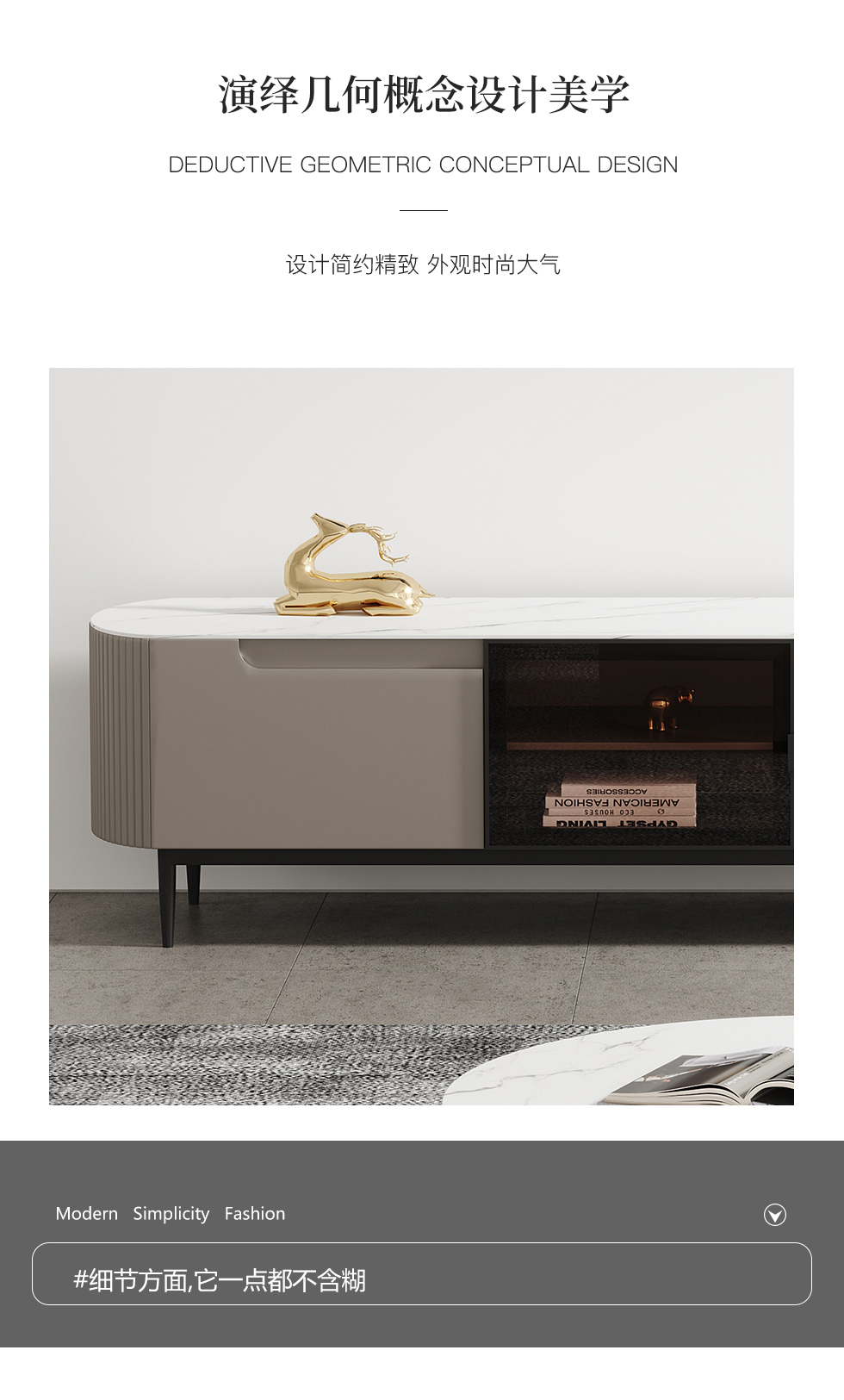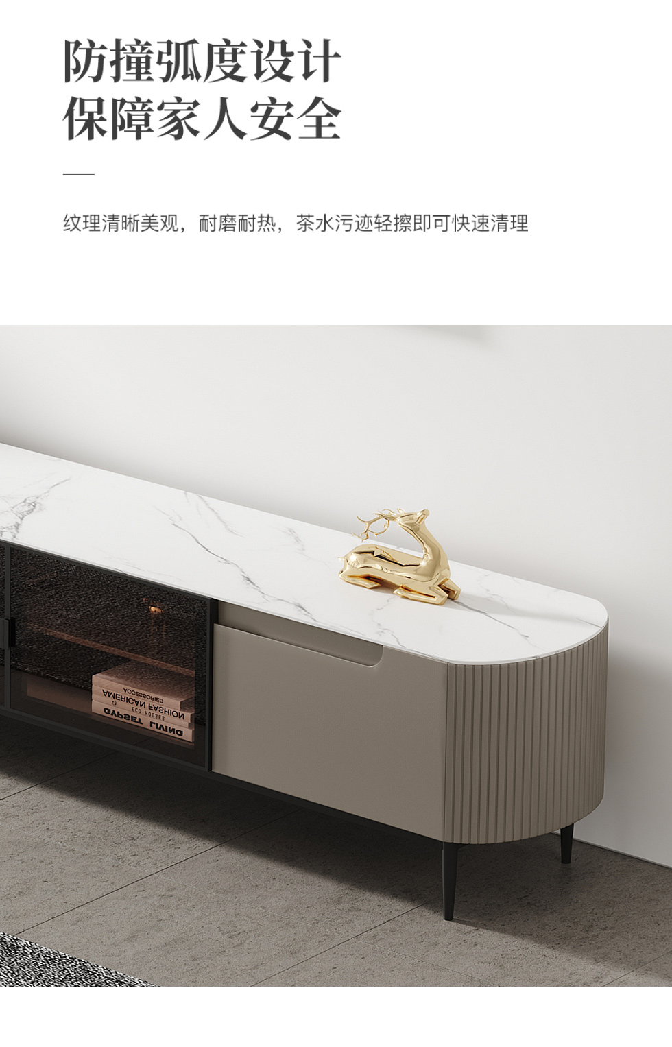 【套餐专享价】每屋优享系列 现代简约 亮光岩板+免漆板+高碳素钢脚 图片色 2米电视柜(未开电源孔)