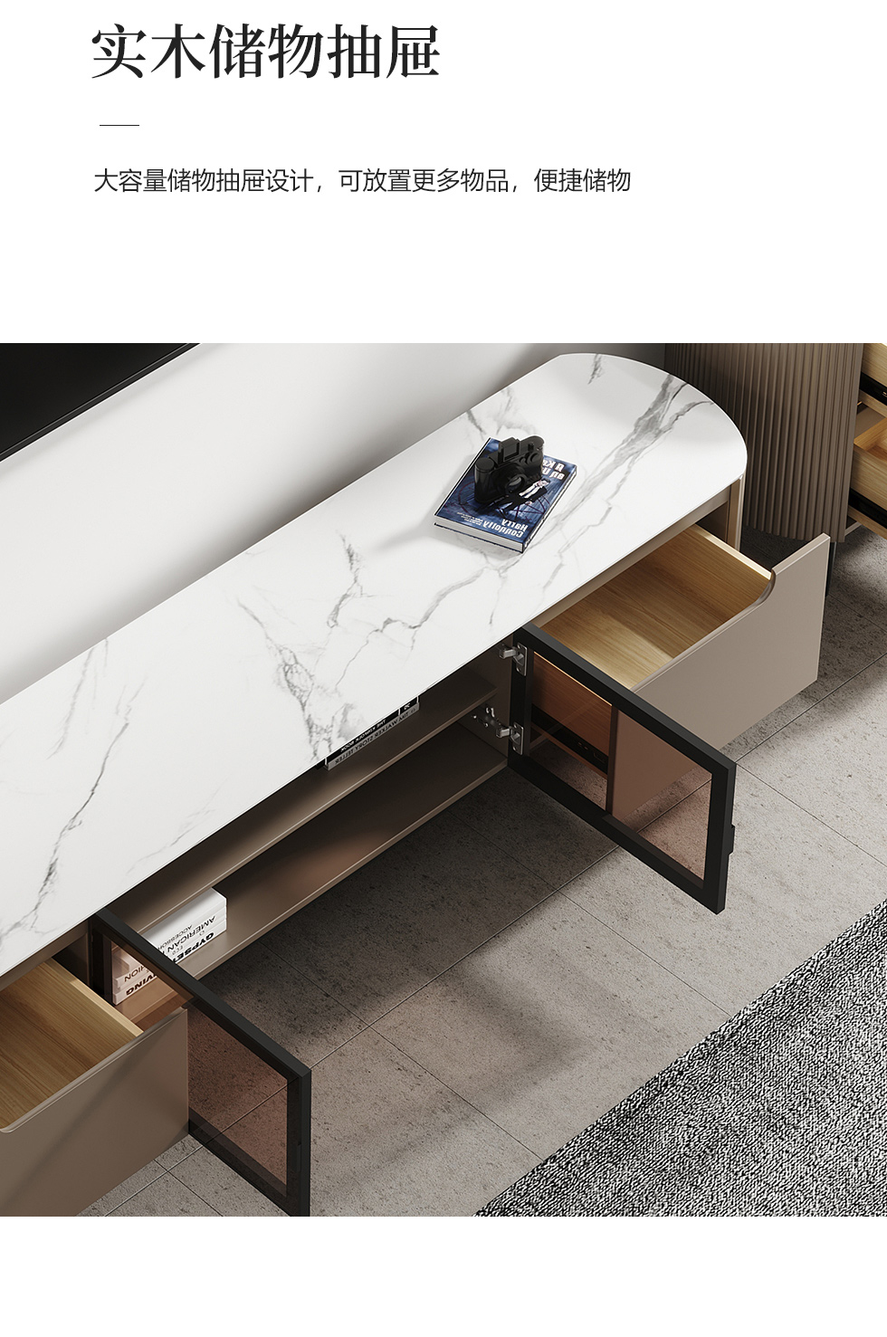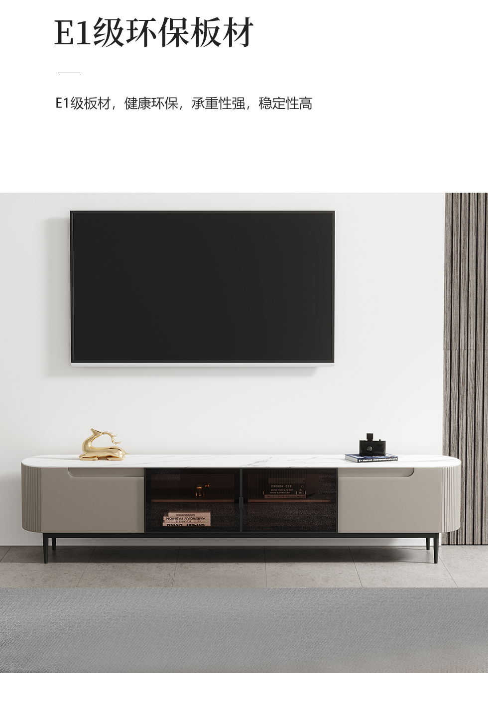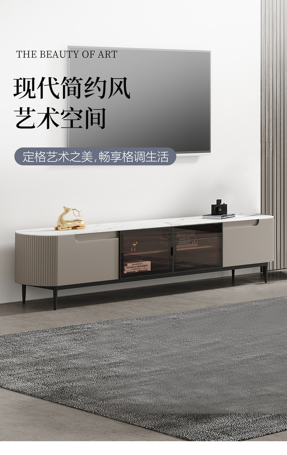 【套餐专享价】每屋优享系列 现代简约 岩板+密度板+碳素 钢五金脚 2米电视柜(未开电源孔)¥1631