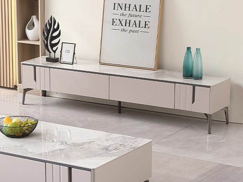 【套餐专享价】每屋优享系列 现代简约 岩板+密度板+碳素 钢五金脚 2米电视柜(未开电源孔)