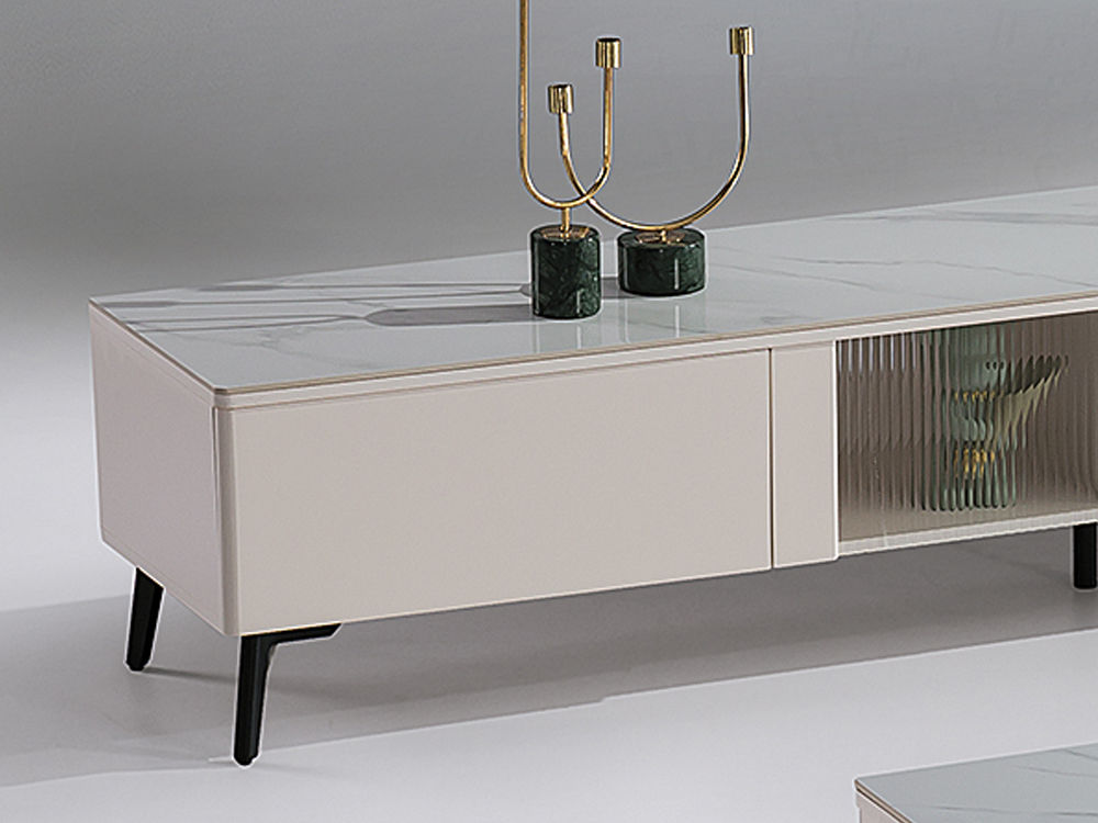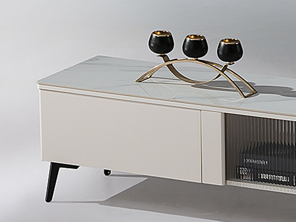 甄品家具 现代简约 烤漆柜体+亮光雪山石岩板+茶色钢化玻璃+碳素钢脚架 2米电视柜(未开电源孔)(不含斗柜)¥2248