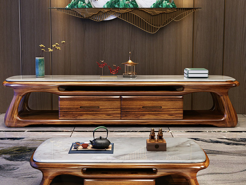 归鹊 新中式 乌金木框架+大理石台面 2米电视柜¥9707