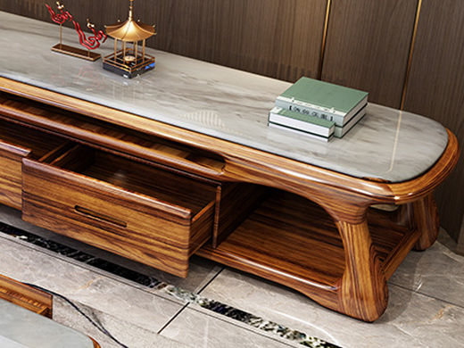 归鹊 新中式 乌金木框架+大理石台面 2米电视柜