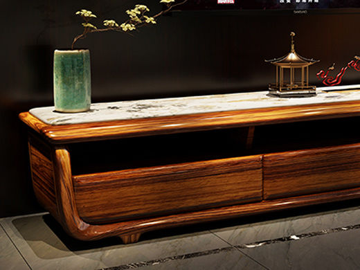 归鹊 新中式 乌金木框架+大理石台面 2米电视柜¥8467