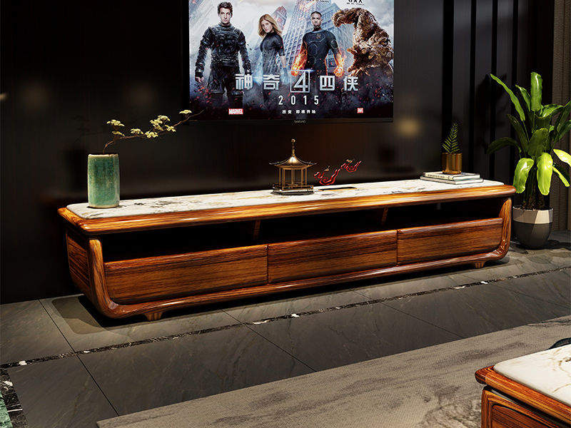 归鹊 新中式 乌金木框架+大理石台面 2米电视柜