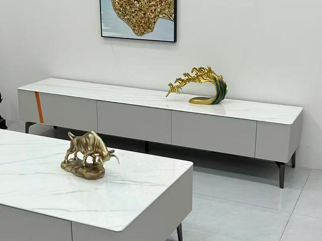 【套餐专享价】每屋优享系列 现代简约 亮光岩板+免漆板+高碳素钢脚 图片色 2米电视柜(未开电源孔)¥1631