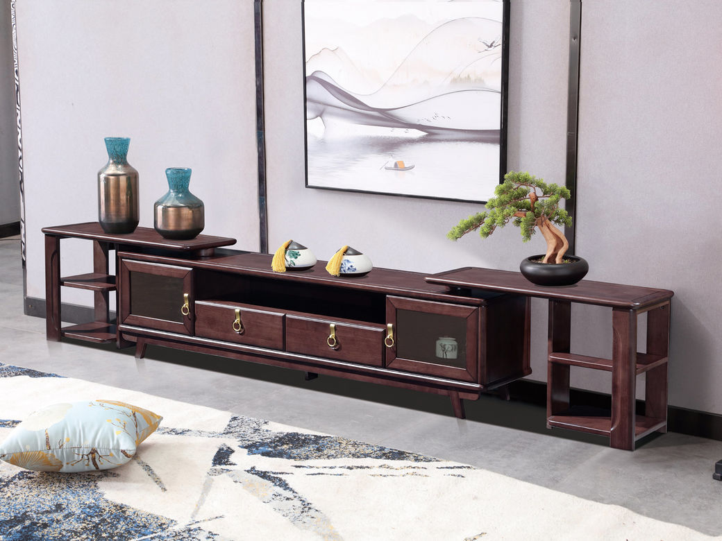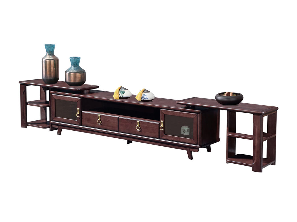匠心 中式 榄仁木+实木多层板 拉伸电视柜(含一对搭架)(未开电源孔)¥5825