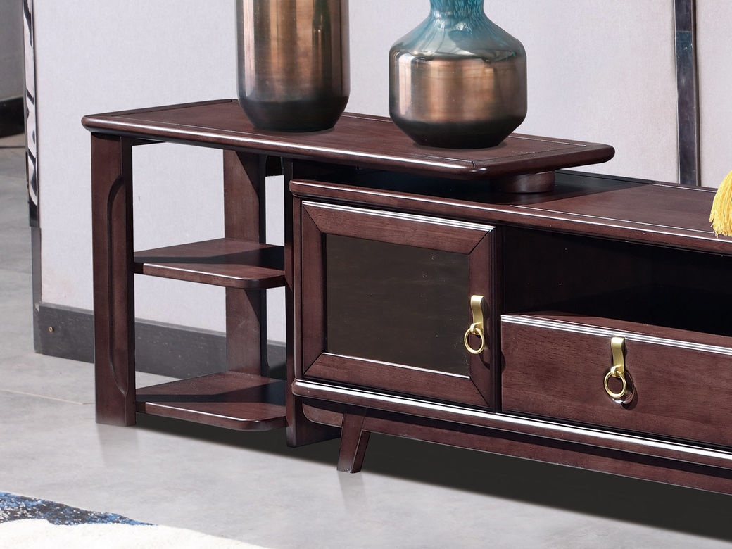 山止 新中式 橡胶木+实木多层板 紫檀色 2M电视柜(未开电源孔)