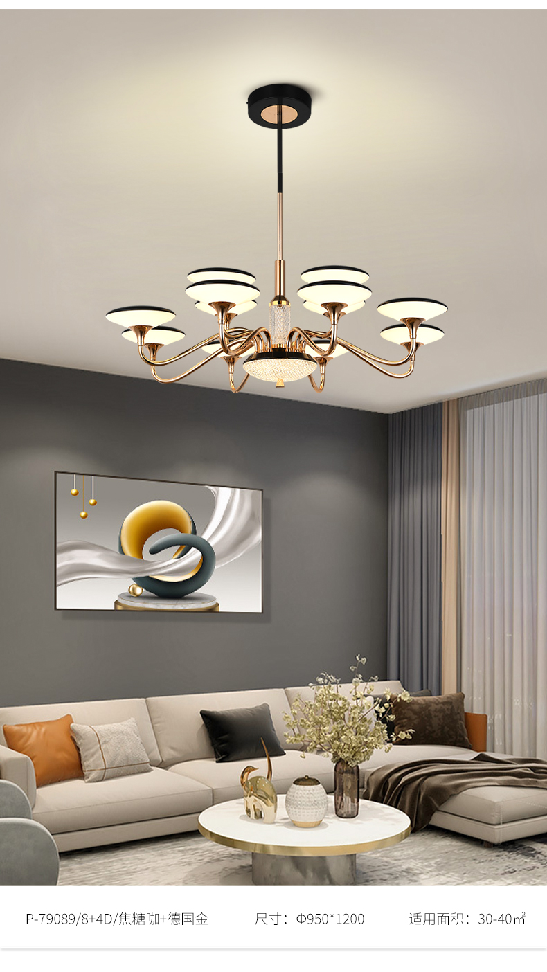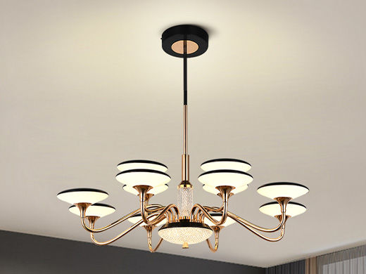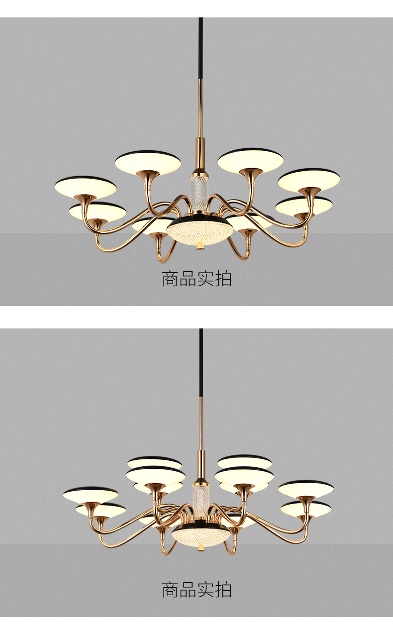 宏光灯饰 极简 铁艺+亚克力 LED 156W 3200K 法国金色 12头吊灯