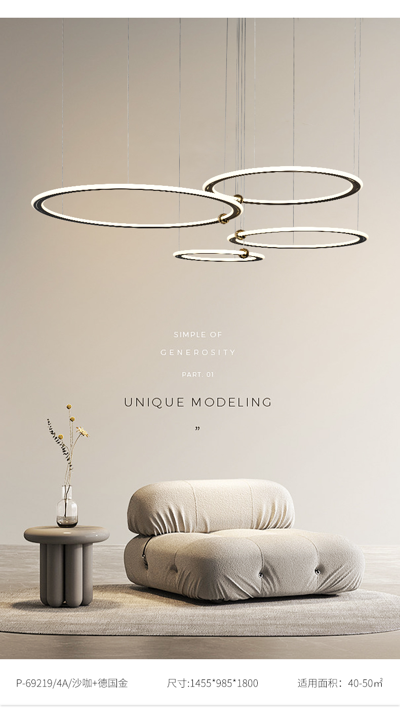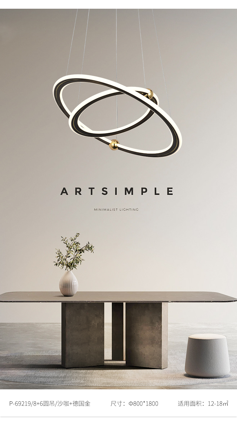 宏光灯饰 极简 冷扎钢板+铝材+硅胶 LED 200w 2.4G 德国金+沙咖色 吊灯
