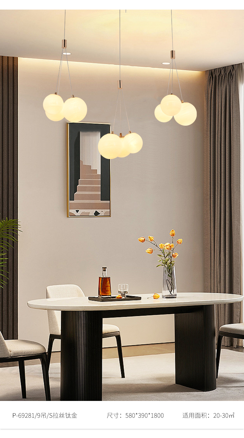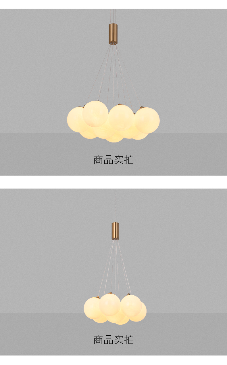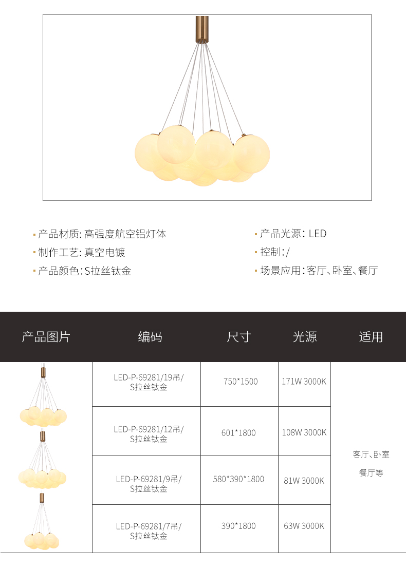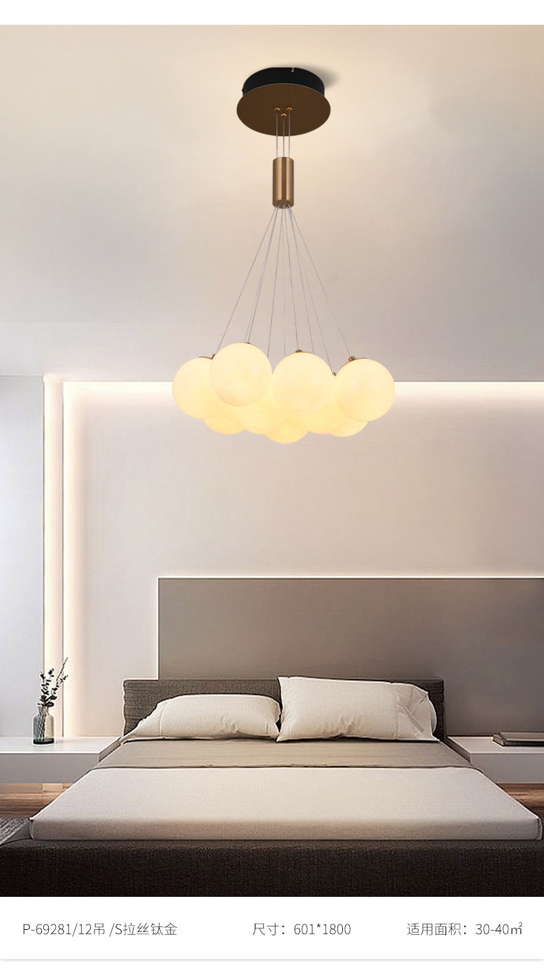 宏光灯饰 极简 冷扎钢板+玻璃球 LED 108W 3000K S拉丝钛金色 12头吊灯